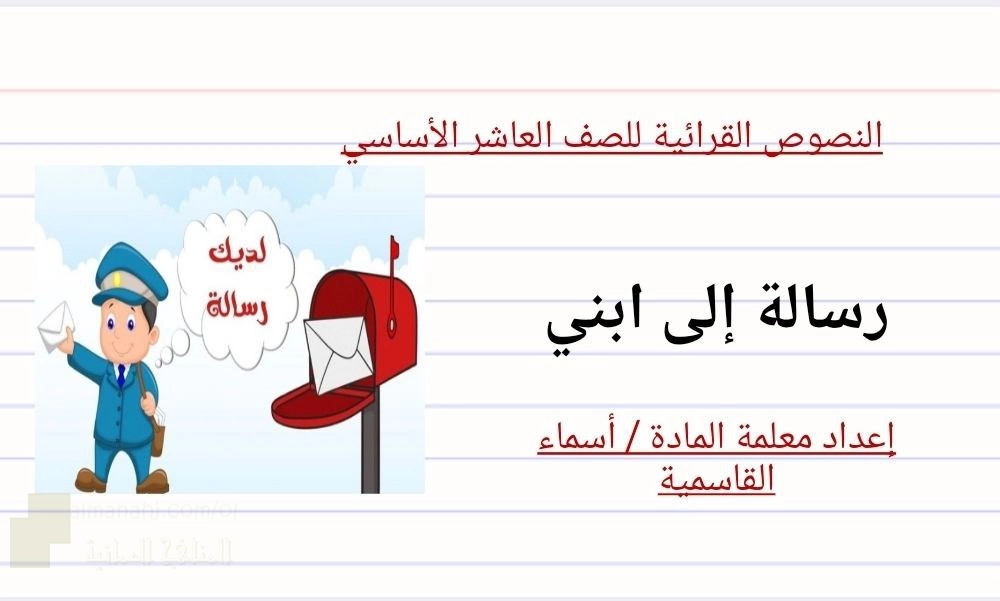 11. الصف العاشر, لغة عربية, عرض بوربوينت للنص القرائي رسالة إلى ابني