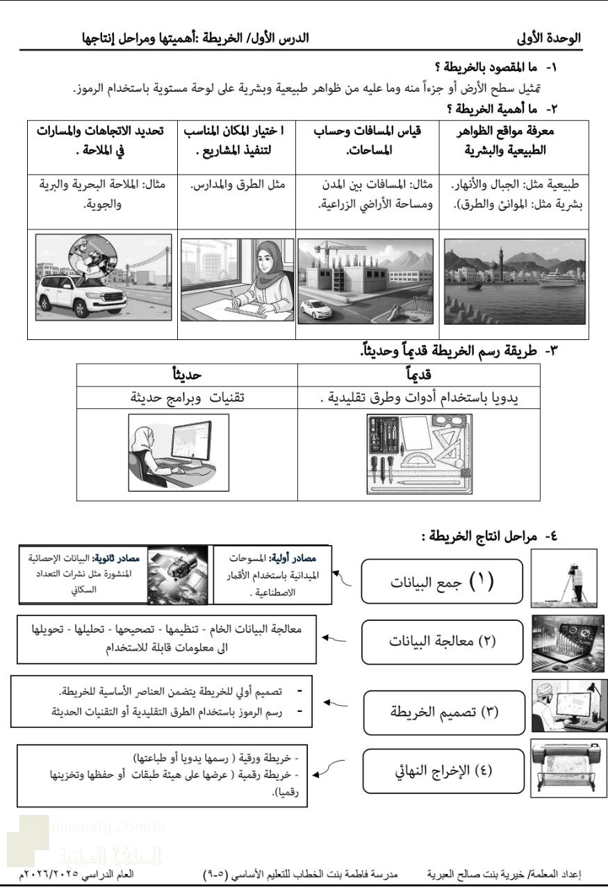 7. مراجعة درس الخريطة أهميتها ومراحل إنتاجها بطريقة سؤال وجواب