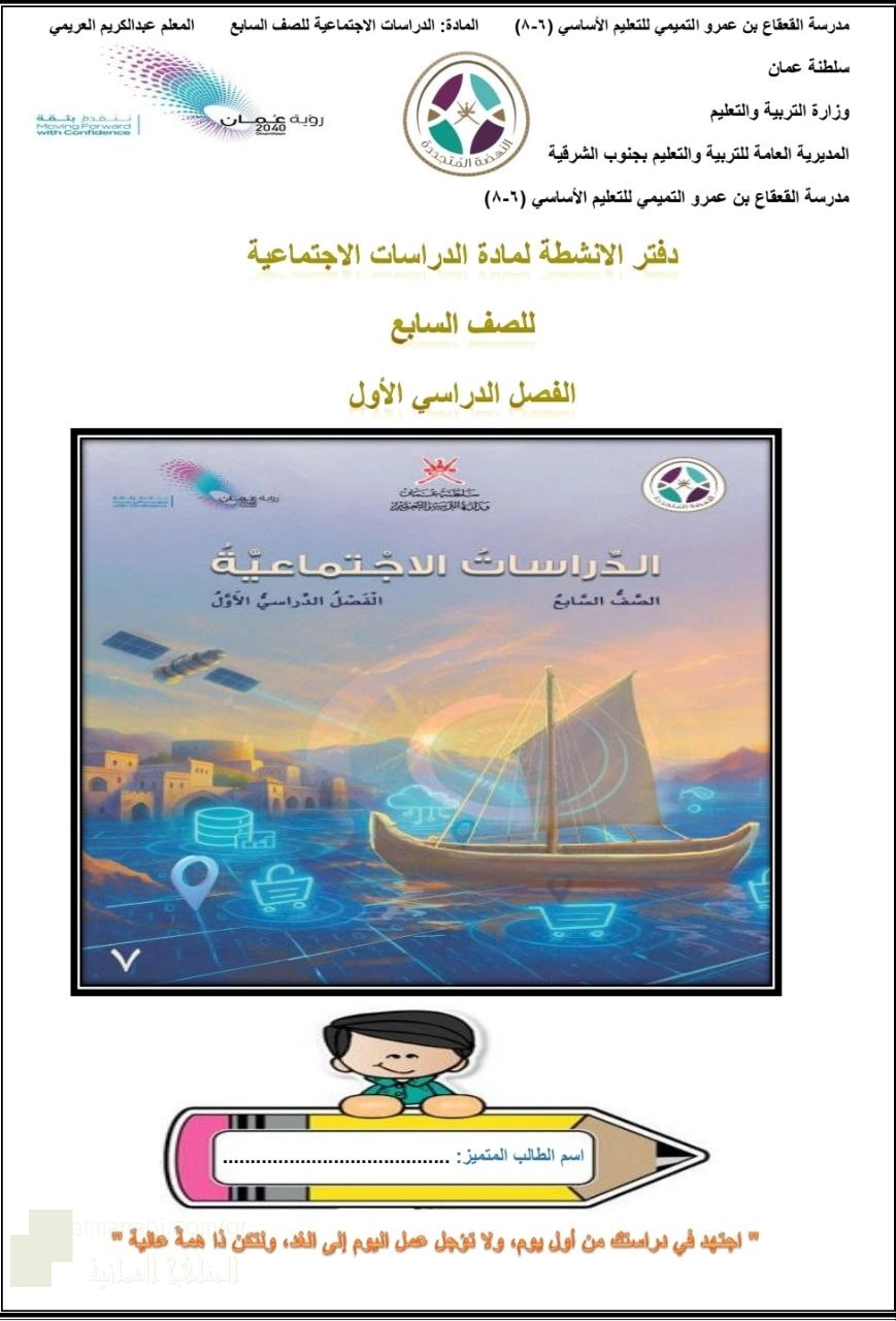 1. اجتماعيات, الفصل الأول, 2025/2026, دفتر الأنشطة المنهج الجديد بمحافظة جنوب الشرقية