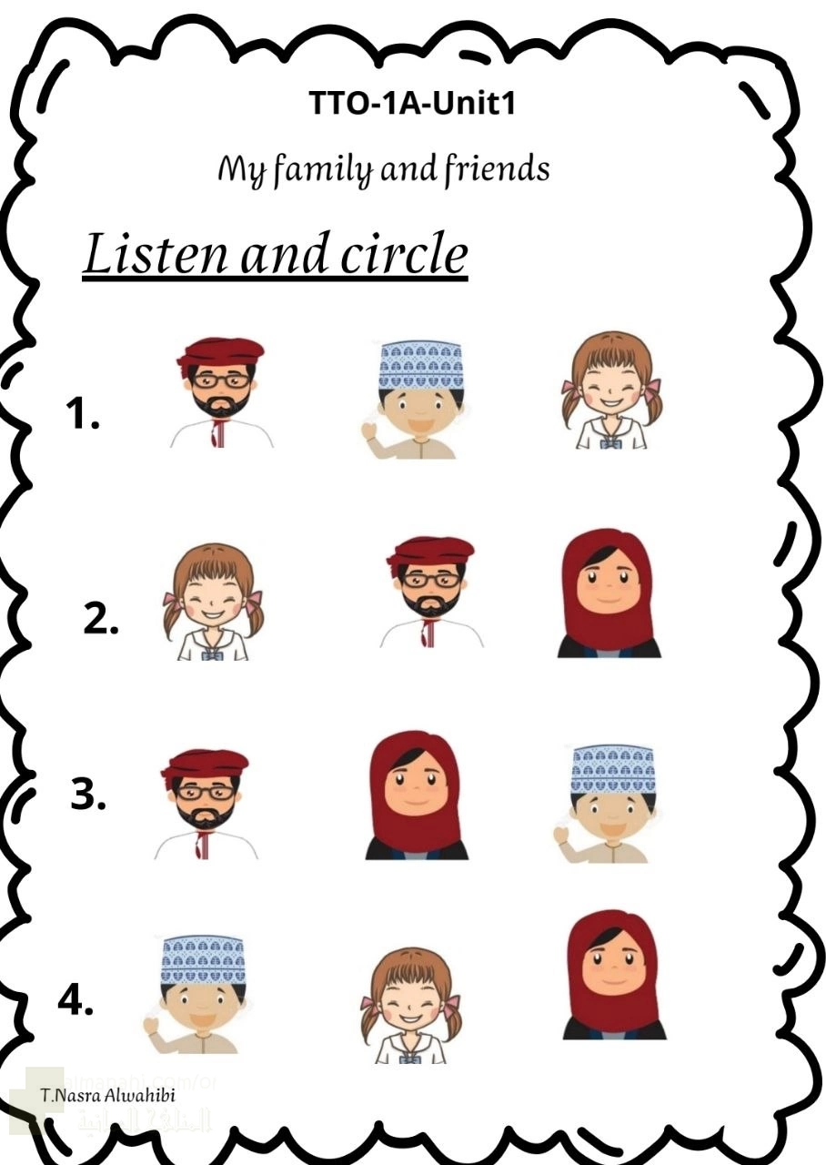 7. الصف الأول, لغة انجليزية, اختبار قصير أول في الوحدة الأولى Unit 1 my family and friends
