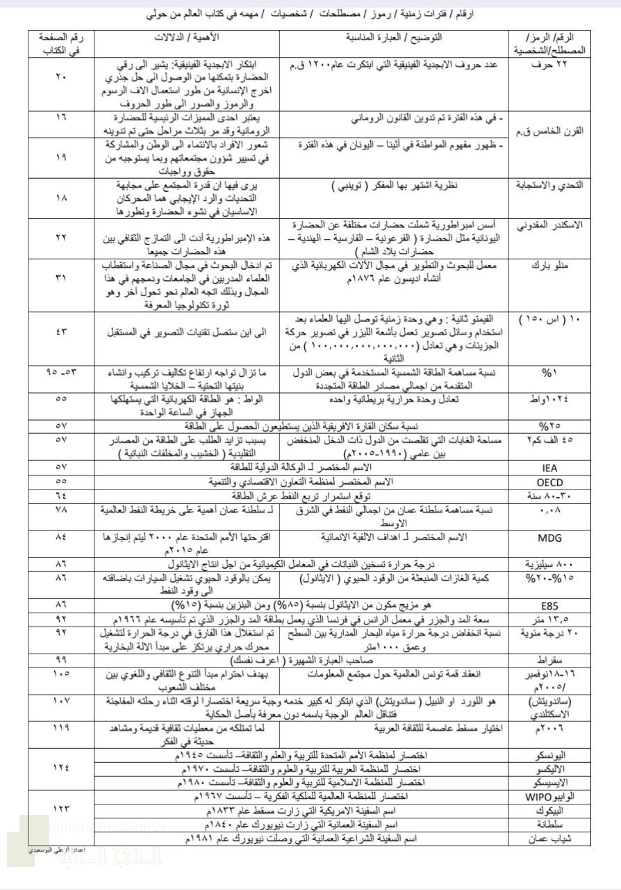 4. الصف الثاني عشر, اجتماعيات, أرقام ورموز مهمة في كتاب العالم من حولي