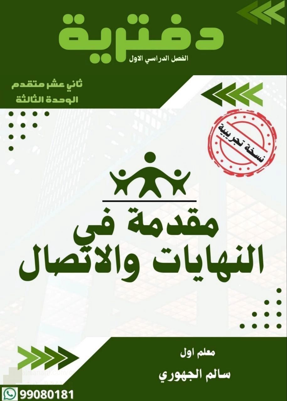دفترية الوحدة الثالثة مقدمة في النهايات والاتصال - إعداد: سالم الجهوري