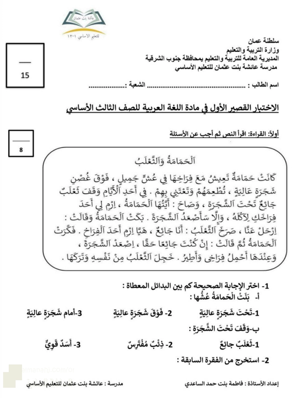 تم إيجاد الملف: اختبار قصير أول بمحافظة جنوب الشرقية