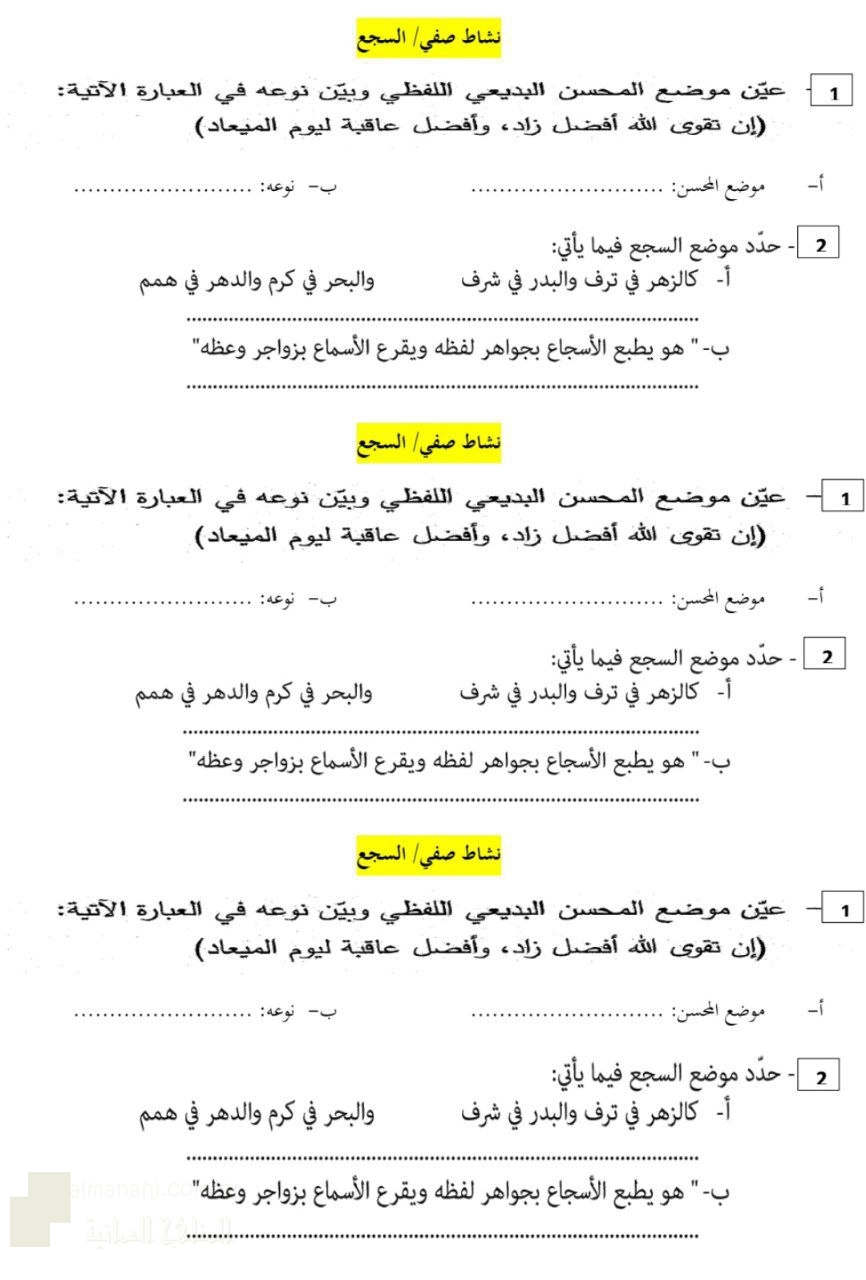 10. الصف الثاني عشر, لغة عربية, ملخص شامل وملم على البلاغة