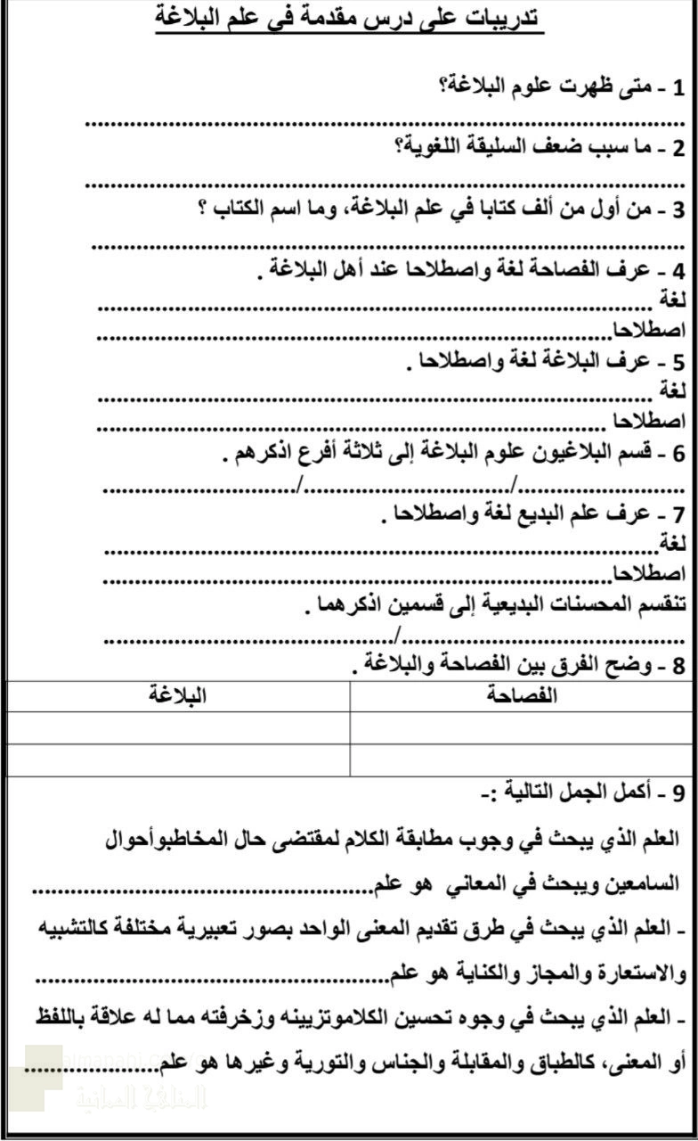 تم إيجاد الملف: تدريبات على درس مقدمة في علم البلاغة