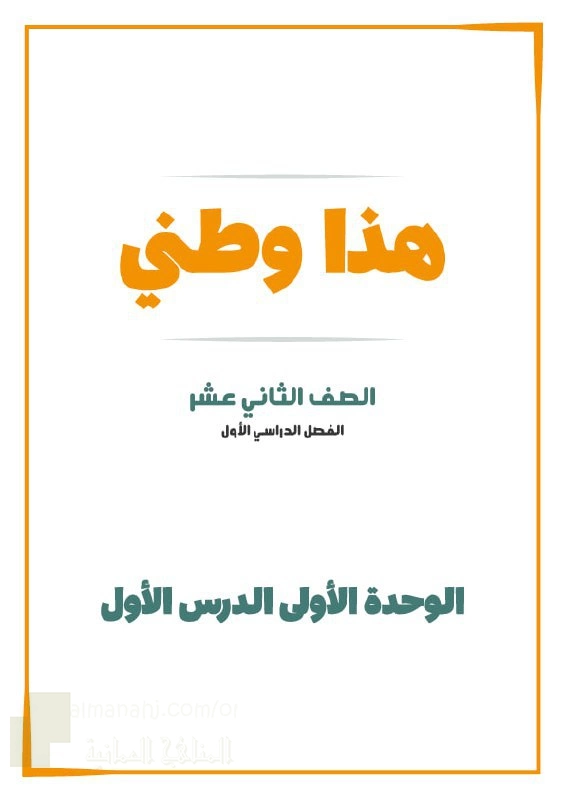 9. الصف الثاني عشر, هذا وطني, ملخص شامل وملم على الدرس الأول الوحدة الأولى كتاب هذا وطني