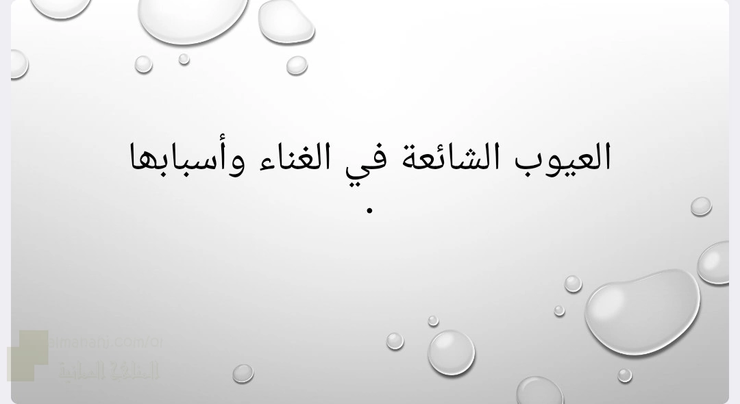 | 4. الصف التاسع, مهارات موسيقية, عرض بوربوينت لدرس العيوب الشائعة في الغناء منهاج جديد قبل 44 دقائق | المشاهدات: 8