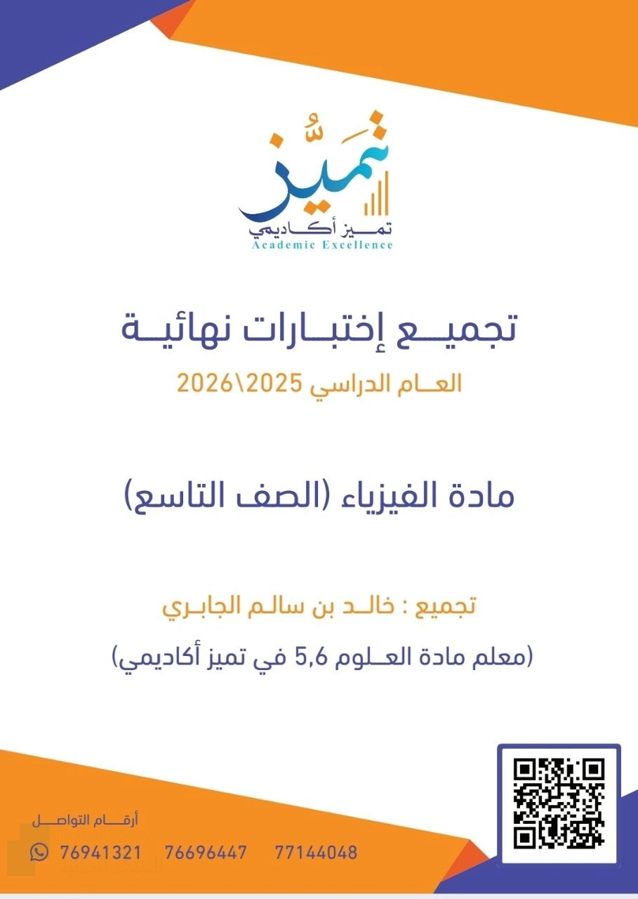 | 3. الصف التاسع, فيزياء, تجميع اختبارات نهائية سابقة مع نماذج الإجابة للفترتين الصباحية والمسائية وللدورين الأول والثاني منهاج جديد قبل 41 دقائق | المشاهدات: 10