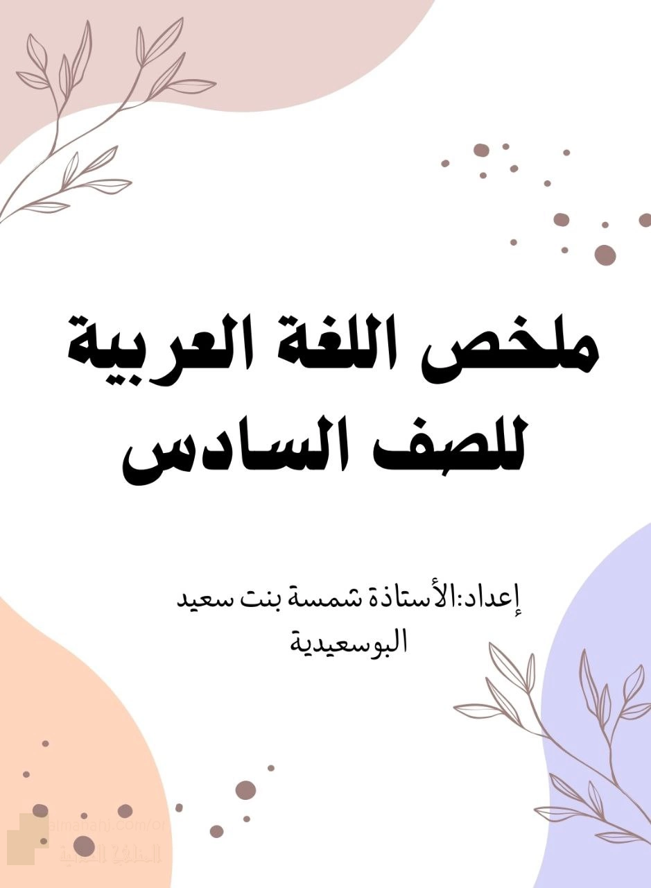 4. الصف السادس, لغة عربية, ملخص دروس المقرر