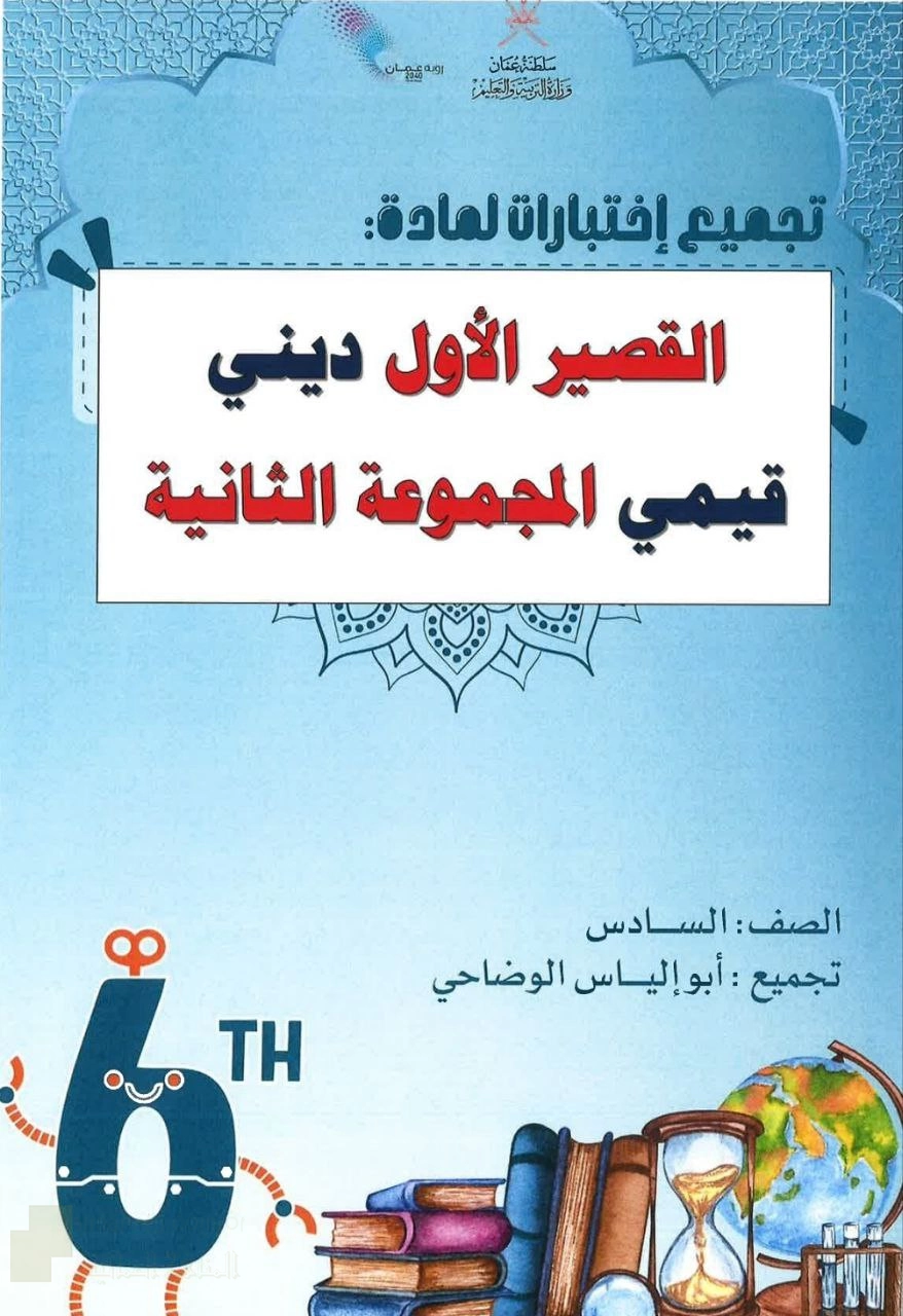 2. الصف السادس, تربية اسلامية, تجميع أسئلة الاختبار القصير الأول ديني قيمي المجموعة الثانية
