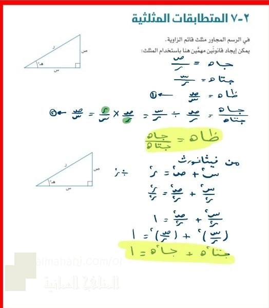 3. حل تمارين مراجعة نهاية الوحدة الثانية (حساب المثلثات) 2