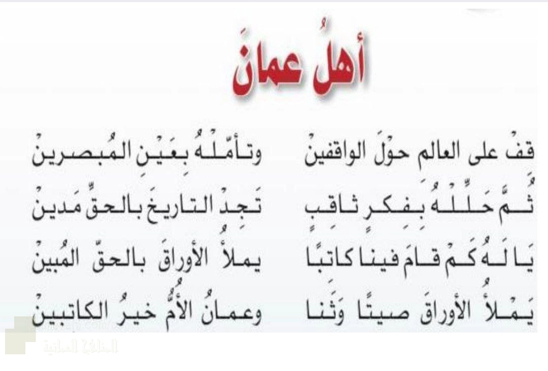 5. الصف الخامس, لغة عربية, ملخص وشرح مختصر لقصيدة أهل عمان