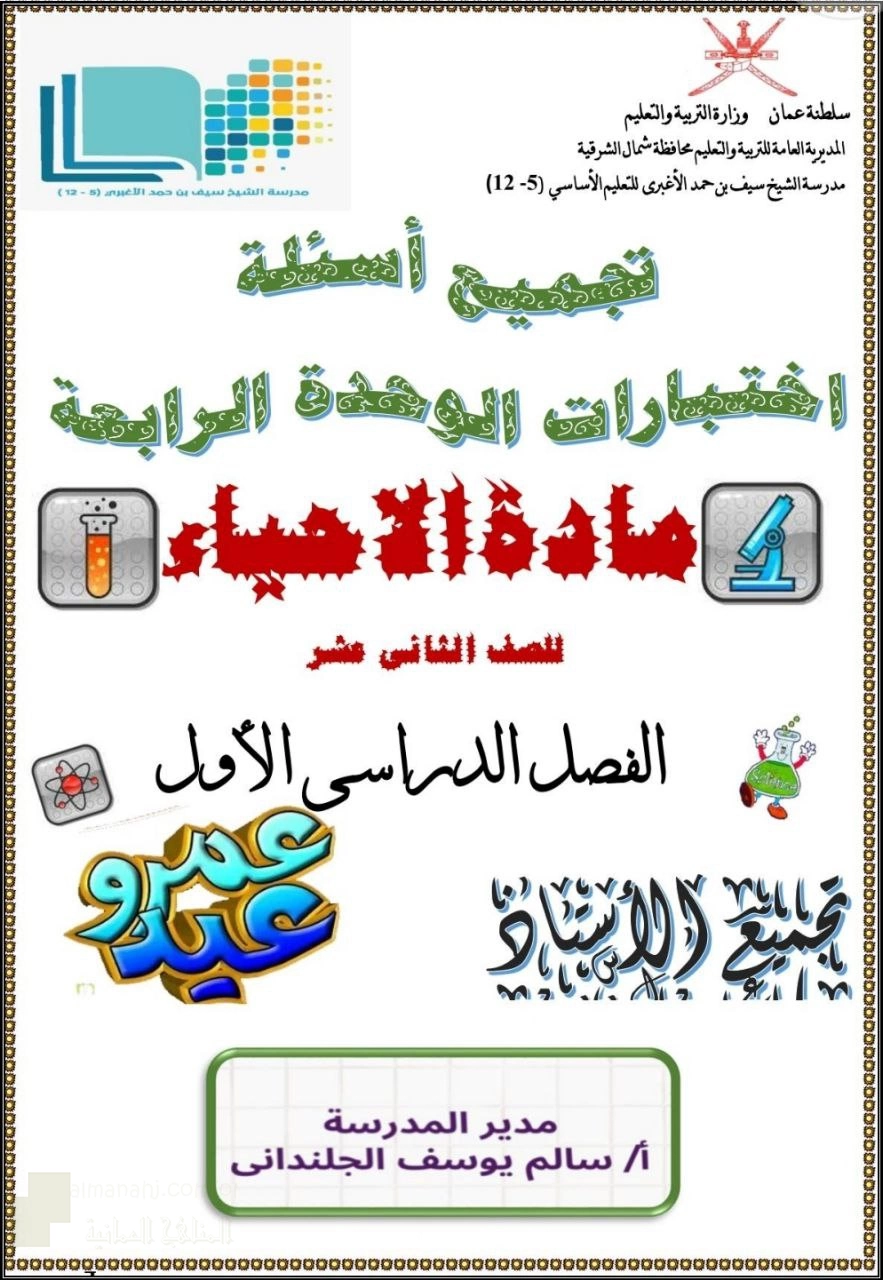 8. أحياء, الفصل الأول, 2025/2026, تجميع أسئلة اختبارات الوحدة الرابعة للأعوام السابقة مرفقة بنماذج الإجابة