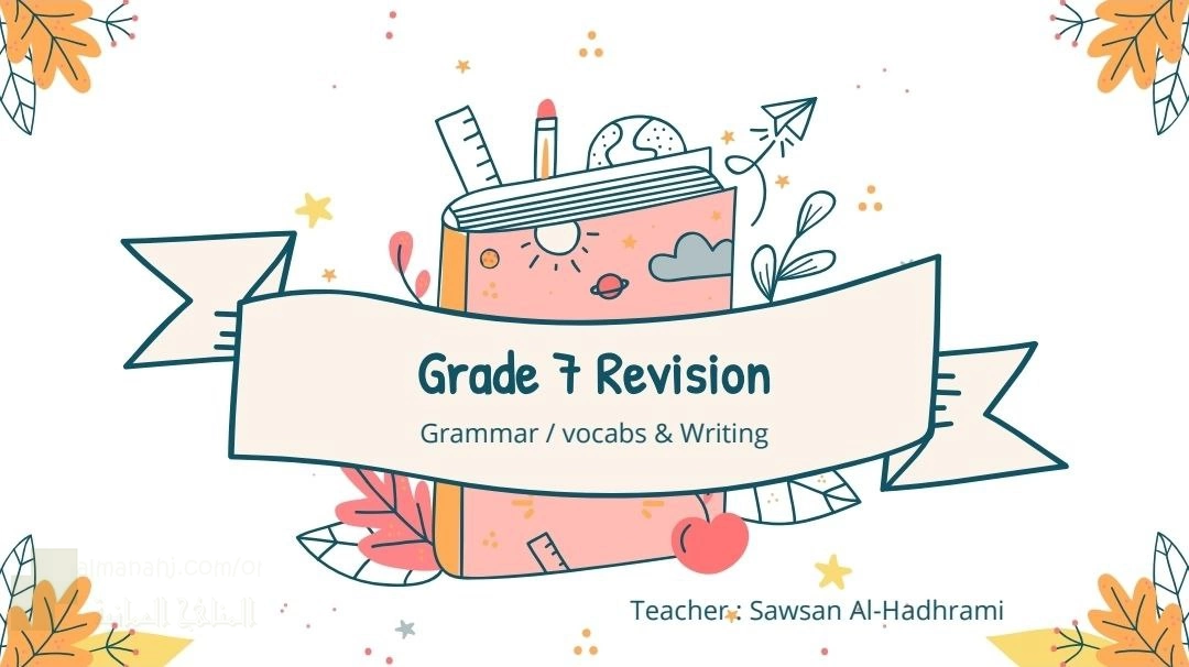 كتيب مراجعة للقواعد والكتابة والكلمات, Sawsan Al Hadhrami, الصف السابع, لغة انجليزية, الفصل الأول, 2025/2026 - المناهج العمانية