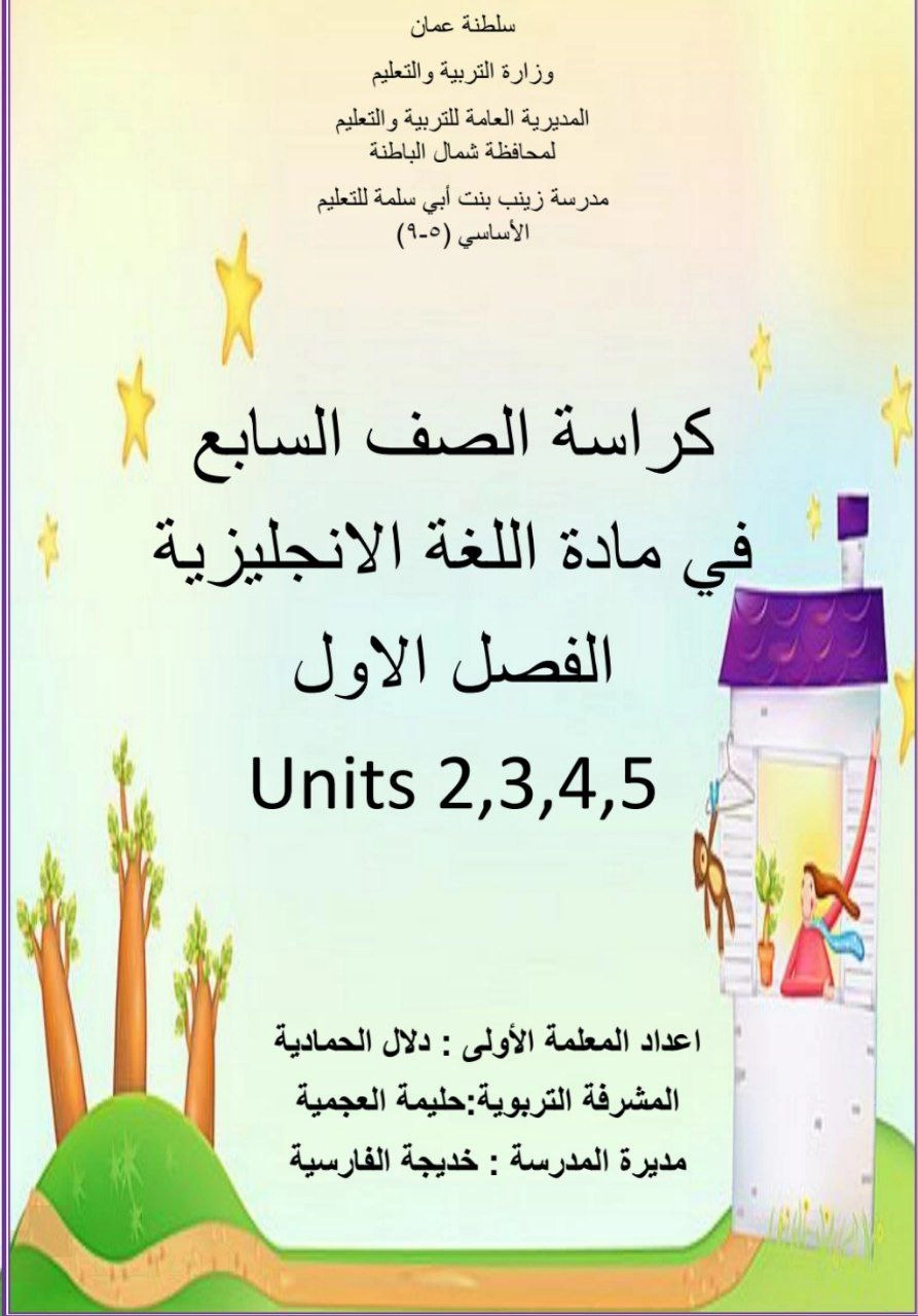 1. الصف السابع, لغة انجليزية, كراسة المادة للوحدات (2،3،4،5)