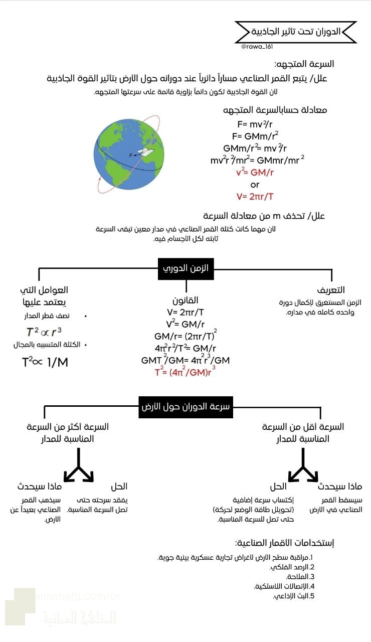 ملخص ثاني لدرس الدوران تحت تأثير الجاذبية