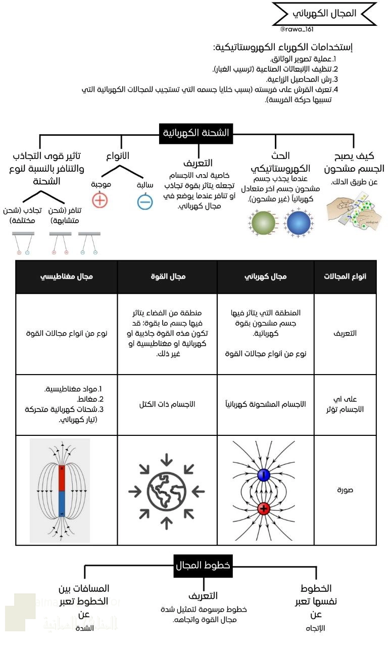 13. الصف الثاني عشر, فيزياء, ملخص شرح قانون كولوم والمجالات الشعاعية