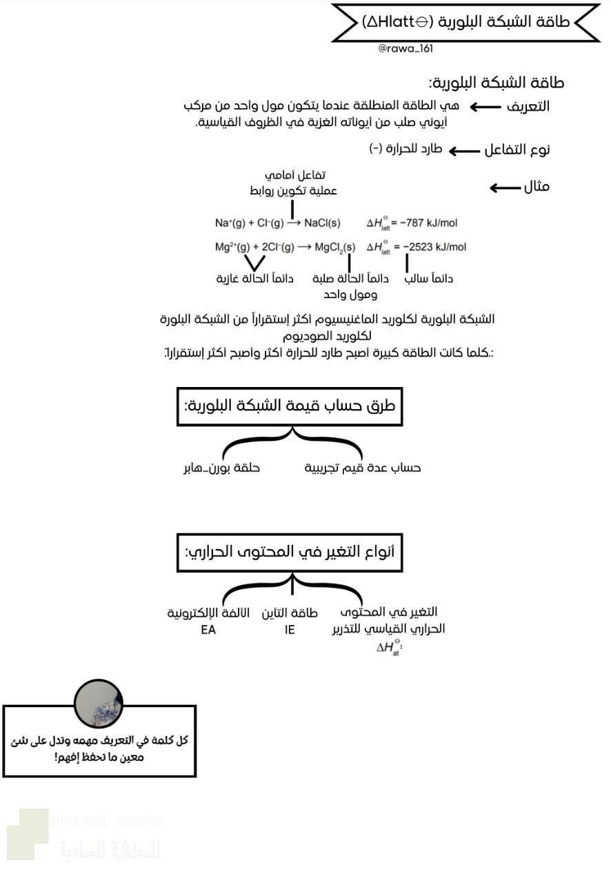 3. الصف الثاني عشر, كيمياء, ملخص طاقة الشبكة البلورية