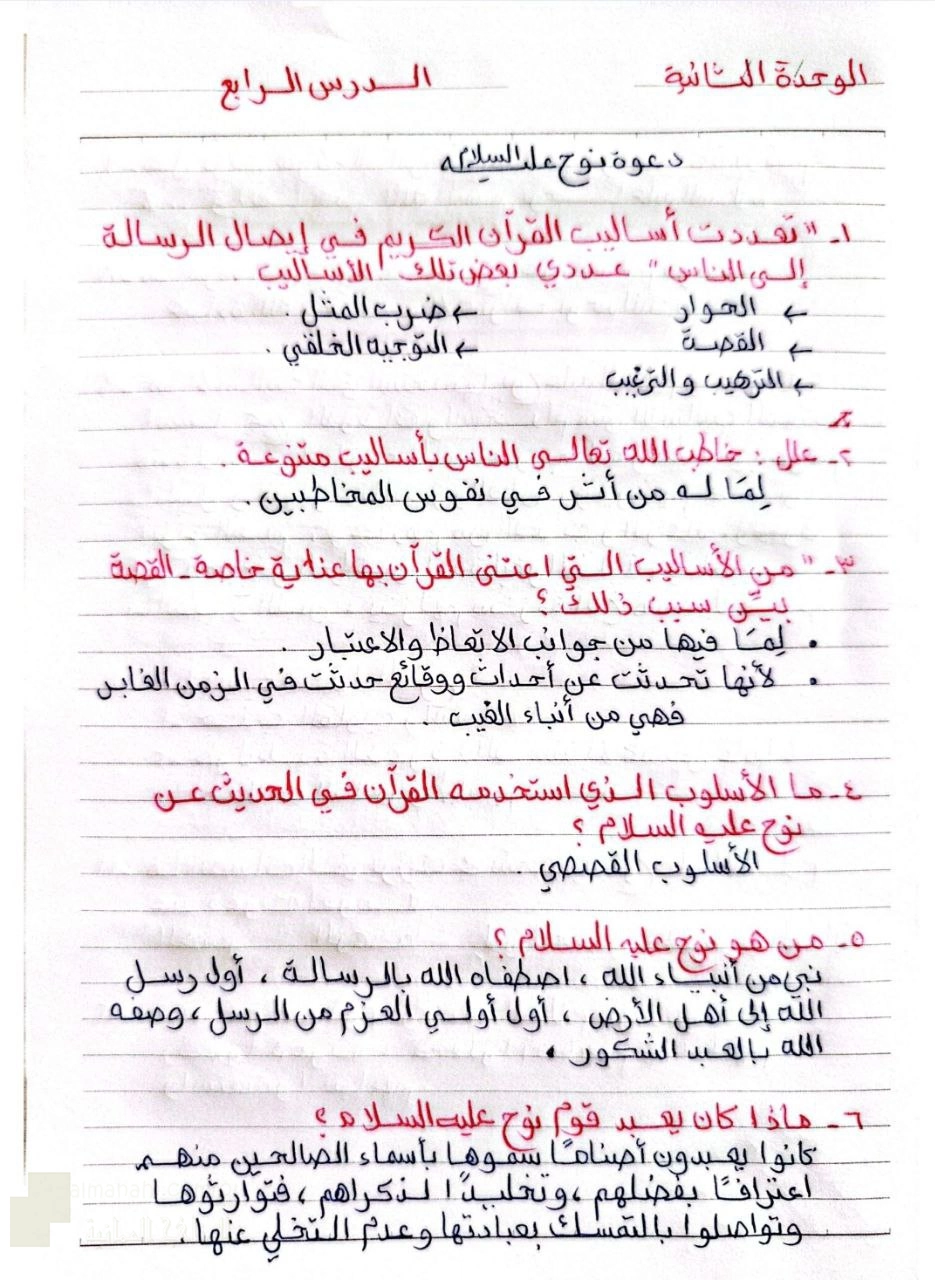15. تربية اسلامية, الفصل الأول, 2025/2026, ملخص الدرس الرابع دعوة نوح عليه السلام
