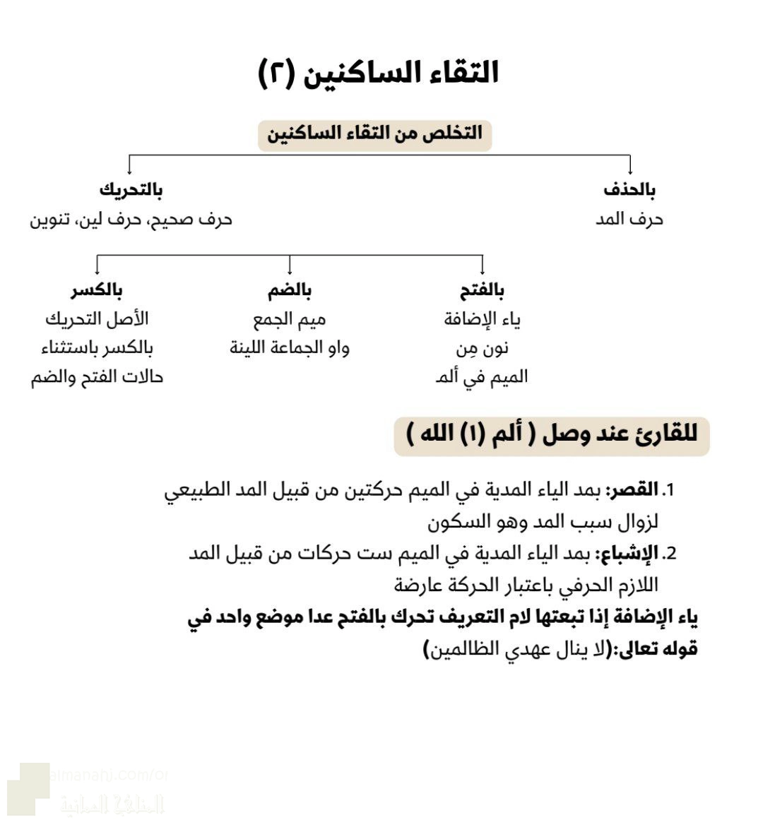 5. الصف التاسع, تربية اسلامية, ملخص مبسط لدرس التجويد التقاء الساكنين (٢)