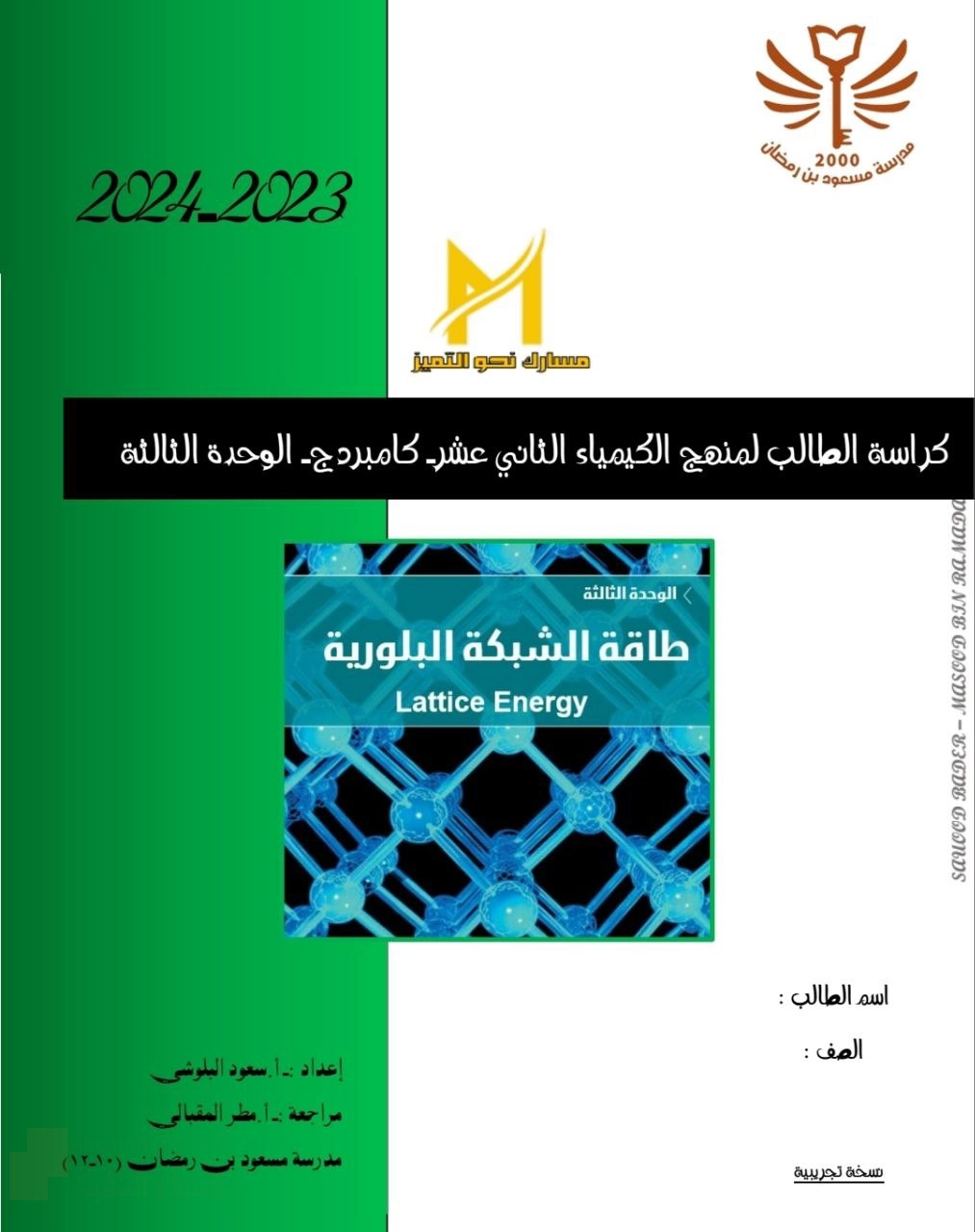 كراسة الوحدة الثالثة طاقة الشبكة البلورية منهج كامبريدج, سعود البلوشي, الصف الثاني عشر, كيمياء, الفصل الأول, 2023-2024, منهج انجليزي - المناهج العمانية