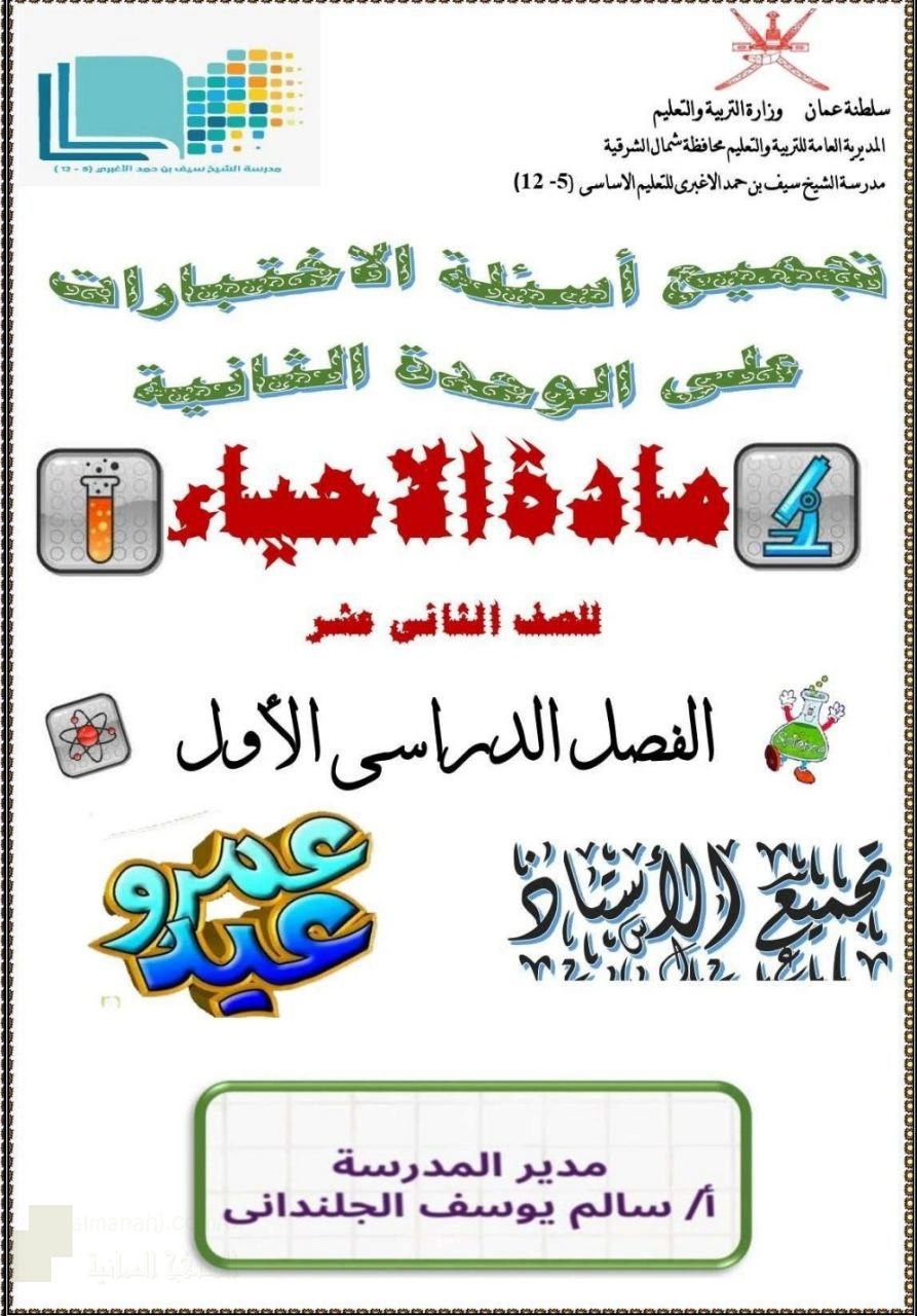 1. الصف الثاني عشر, أحياء, تجميع أسئلة اختبارات سابقة على الوحدة الثانية الوراثة مرفقة بنماذج الإجابة