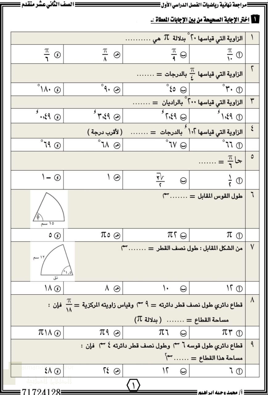 1. الصف الثاني عشر, رياضيات متقدمة, الشرح التفصيلي للوحدة الأولى القياس الدائري الجزء الأول