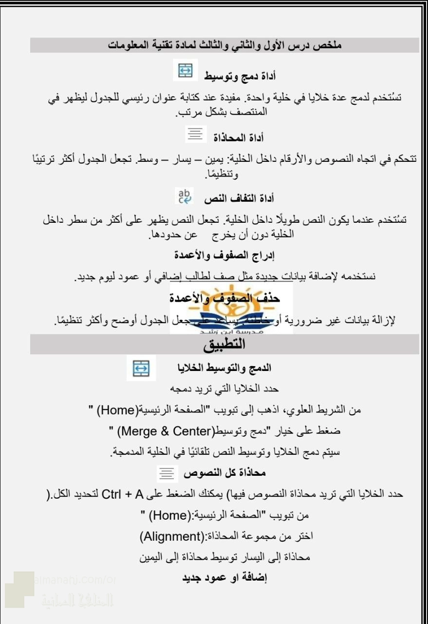 2. الصف السادس, حاسوب, ملخص الدروس الأول والثاني والثالث