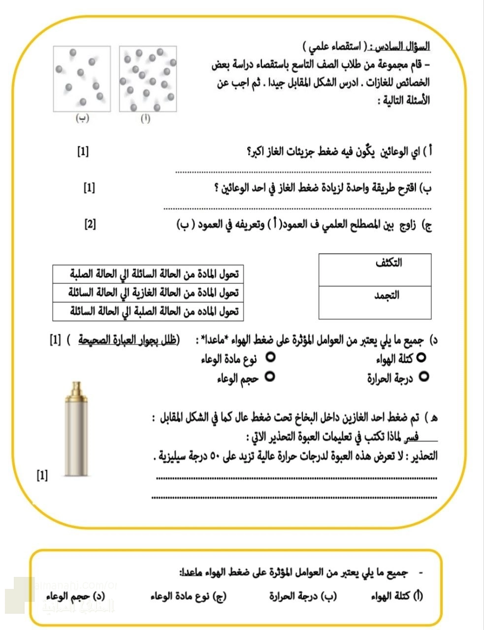 6. الصف التاسع, فيزياء, استقصاء عملي للوحدة الخامسة نموذج الحركة الجزيئية البسيطة للمادة