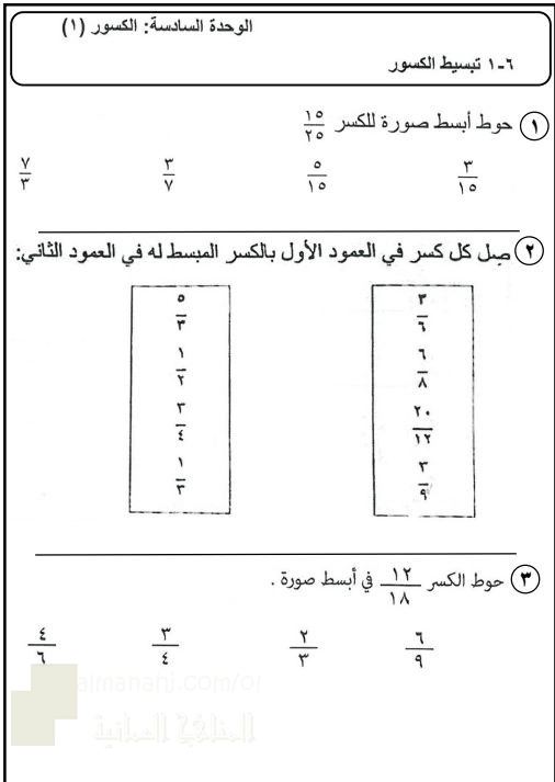 2. رياضيات, الفصل الأول, 2025/2026, نشاط درس تبسيط الكسور