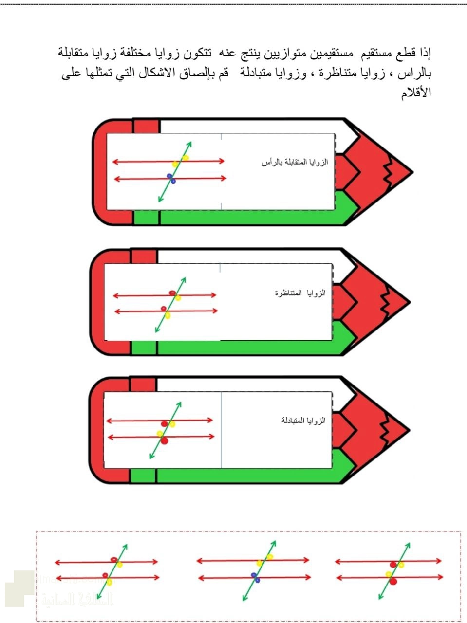 10. الصف السابع, رياضيات, ملخص وتمارين على درس الخطوط المتوازية