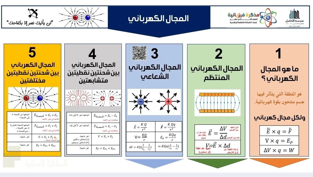9. الصف الثاني عشر, فيزياء, مذكرة المجال الكهربائي مع أسئلة اختبارية