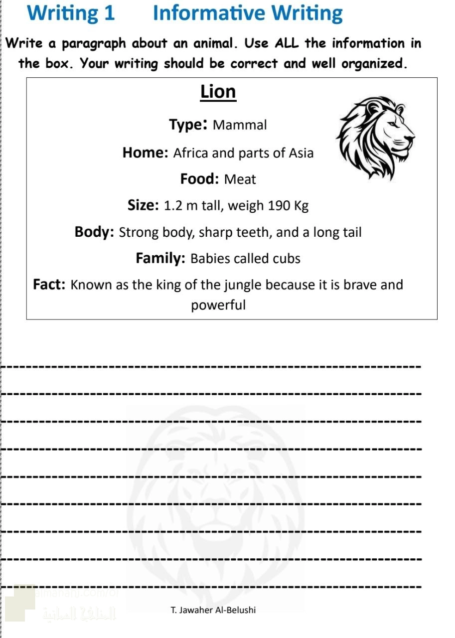 1. الصف السابع, لغة انجليزية, اختبار في مهارة الكتابة