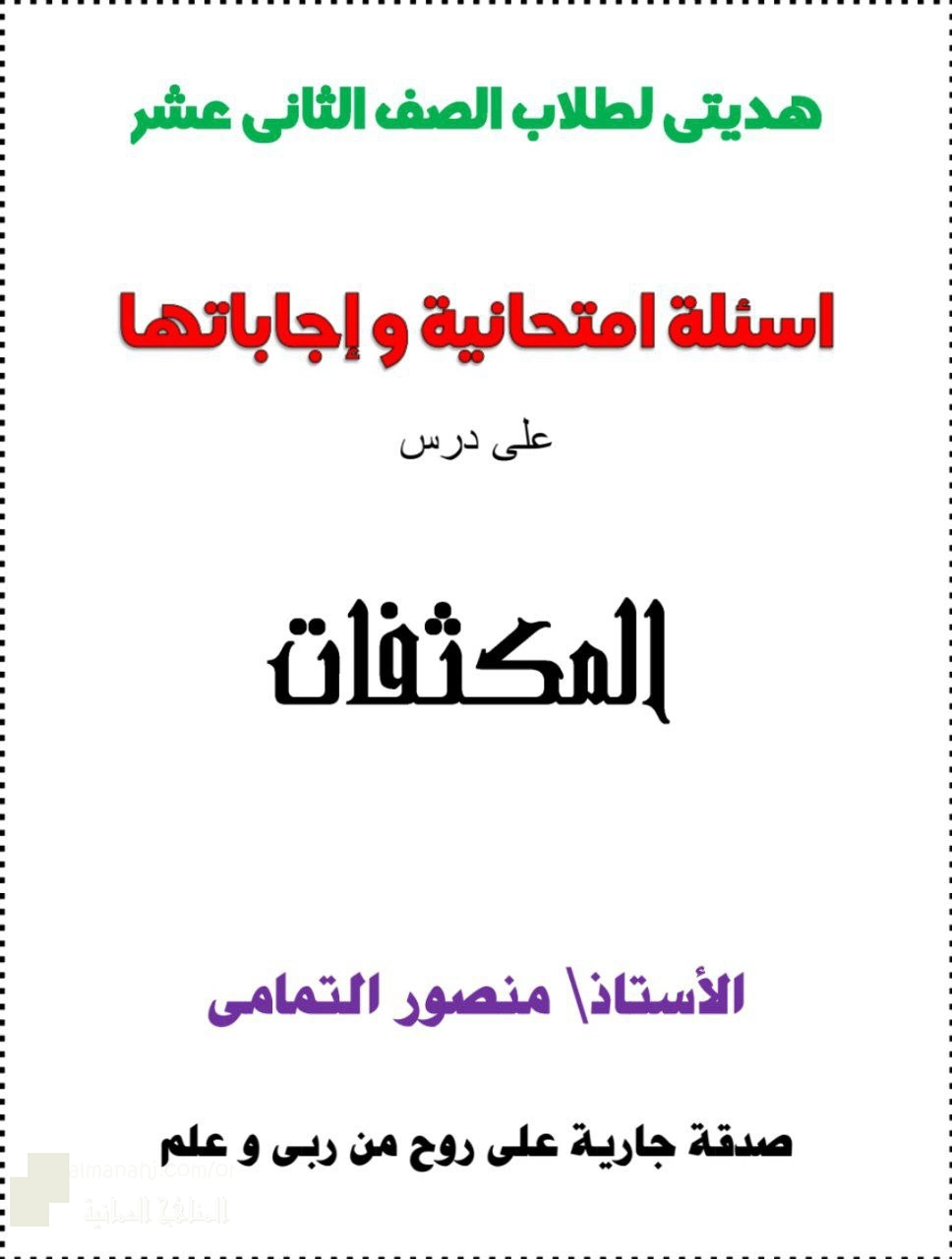8. الصف الثاني عشر, فيزياء, أسئلة امتحانية وإجاباتها على درس المكثفات