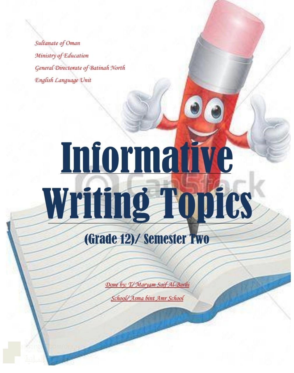 7. الصف الثاني عشر, لغة انجليزية, مواضيع الكتابة الإعلامية lnformative writing topics