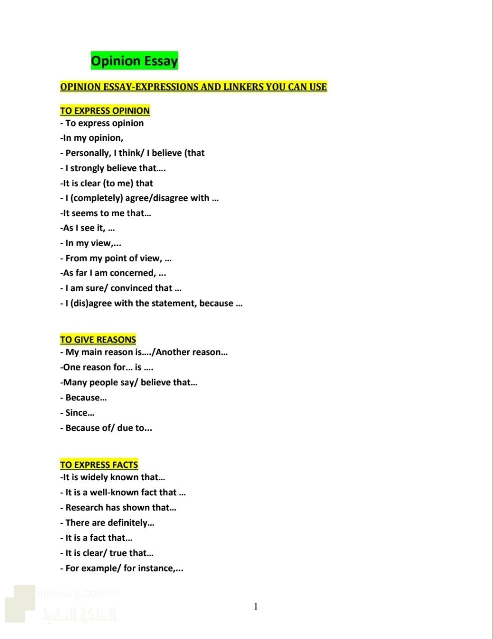 11. الصف الثاني عشر, لغة انجليزية, طريقة كتابة مقال Opinion essay مع تدريبات وحلول