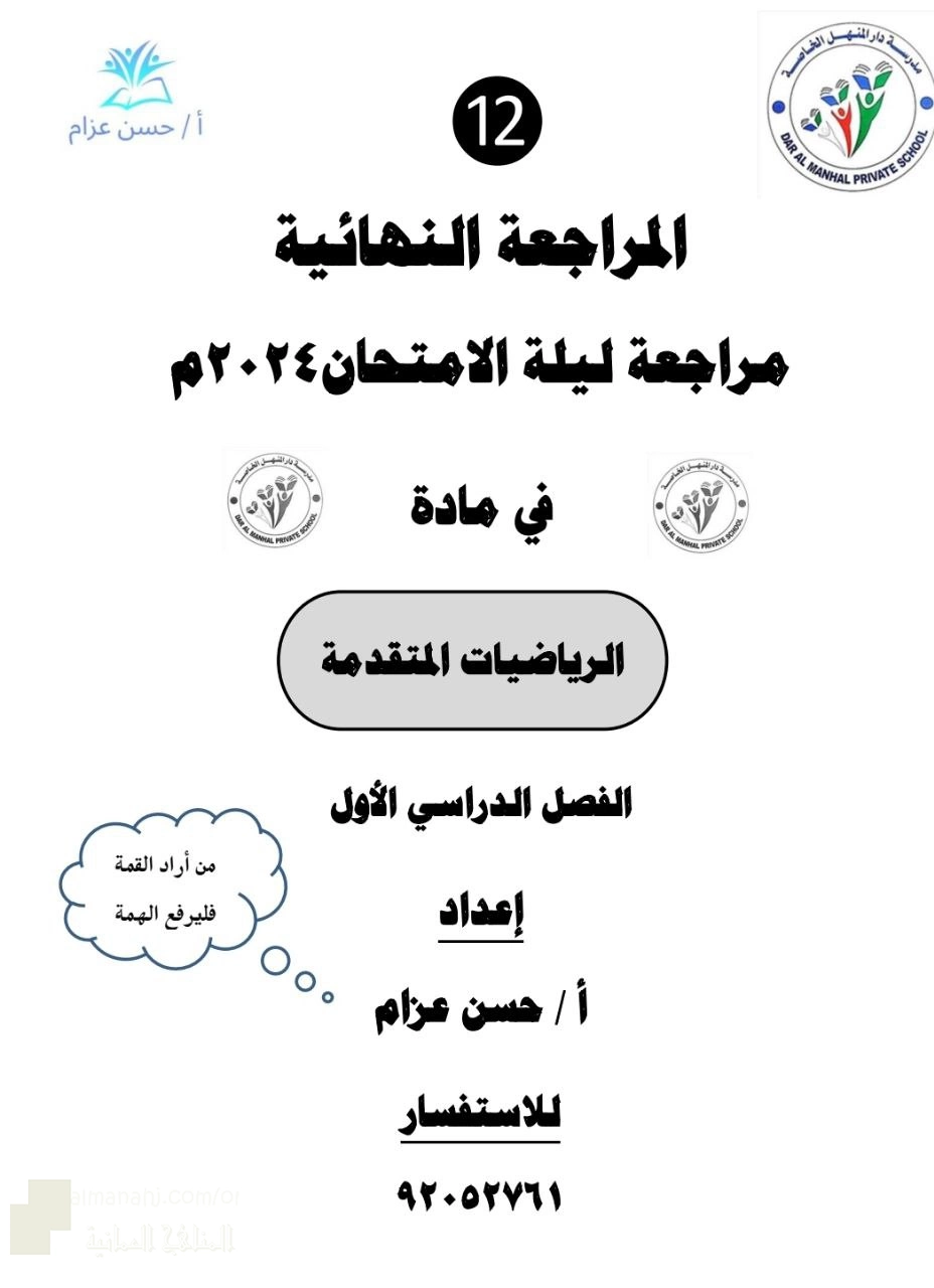 5. الصف الثاني عشر, رياضيات متقدمة, المراجعة النهائية مراجعة قبل الامتحان النهائي