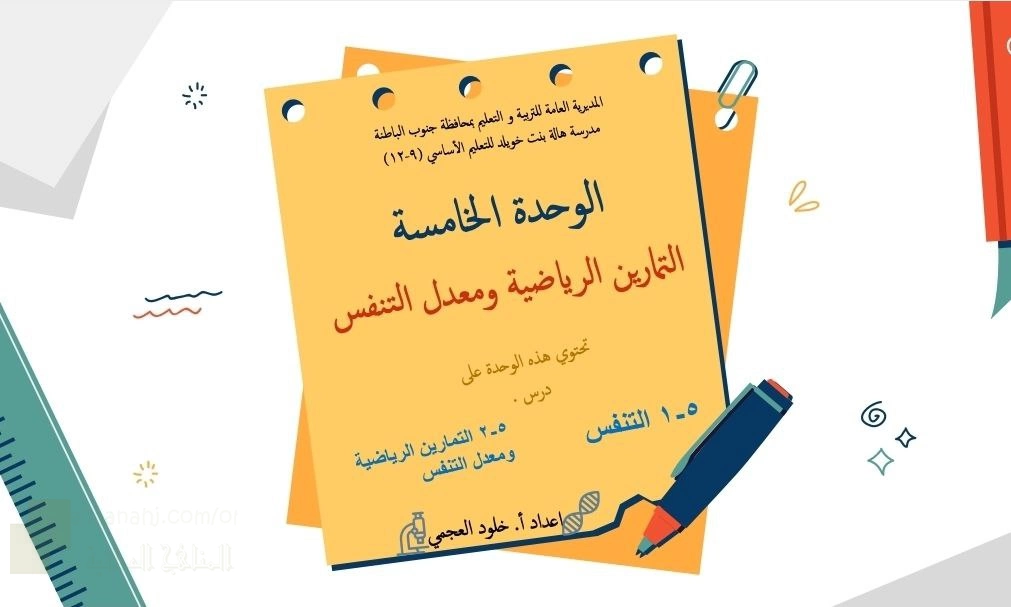 ملخص وشرح دروس الوحدة الخامسة التمارين الرياضية ومعدل التنفس, خلود العجمي, الصف التاسع, أحياء, الفصل الأول, 2025/2026 - المناهج العمانية