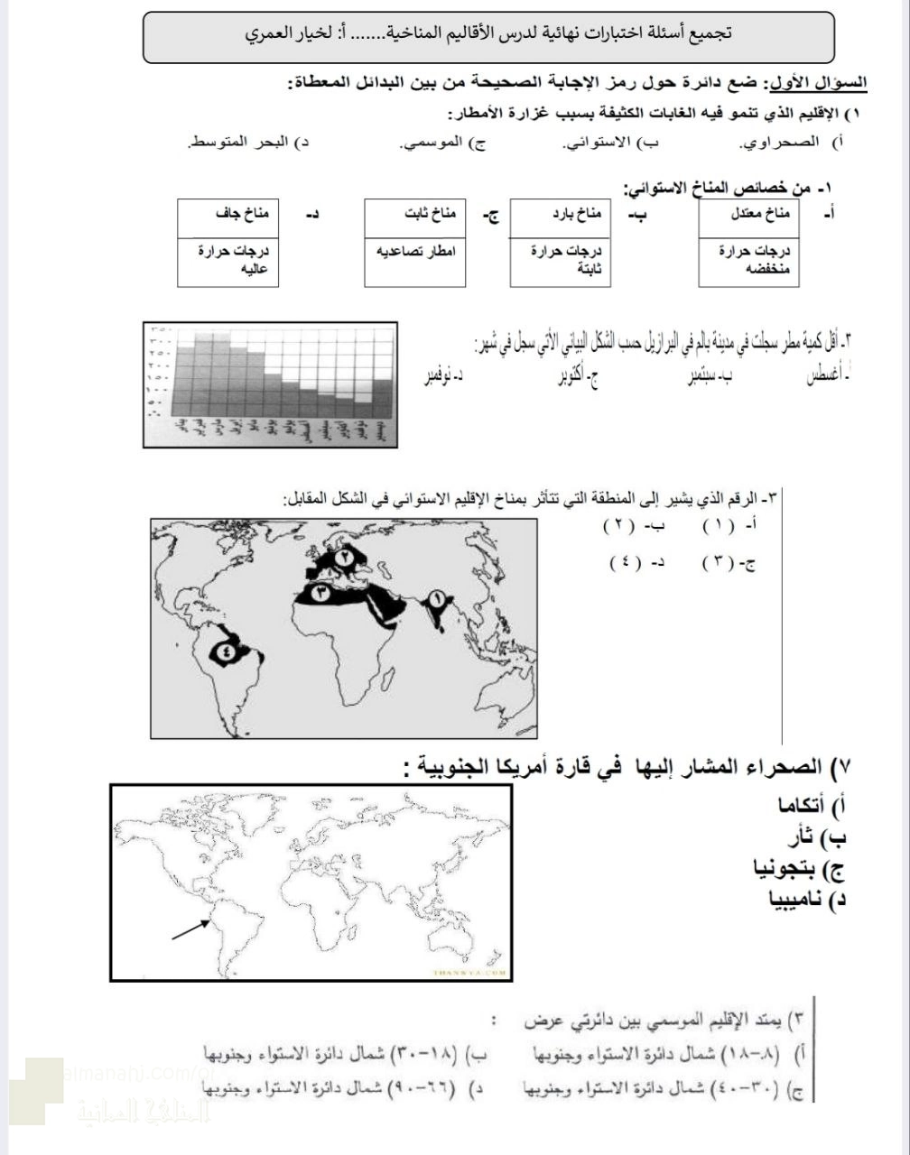 تم إيجاد الملف: أسئلة اختبارات نهائية لدرس الأقاليم المناخية
