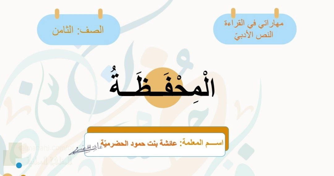 3. الصف الثامن, لغة عربية, ملخص وشرح النص الأدبي المحفظة من مهاراتي في القراءة