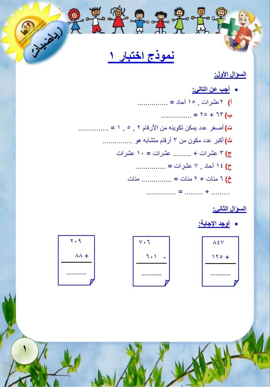 معلومات الملف: أعزائي الطلبة نقدم لكم ملف يتضمن أربعة نماذج مع الاختبارت القصيرة مع الإجابات من مادة الرياضيات للصف الثالث الفصل الدراسي الأول