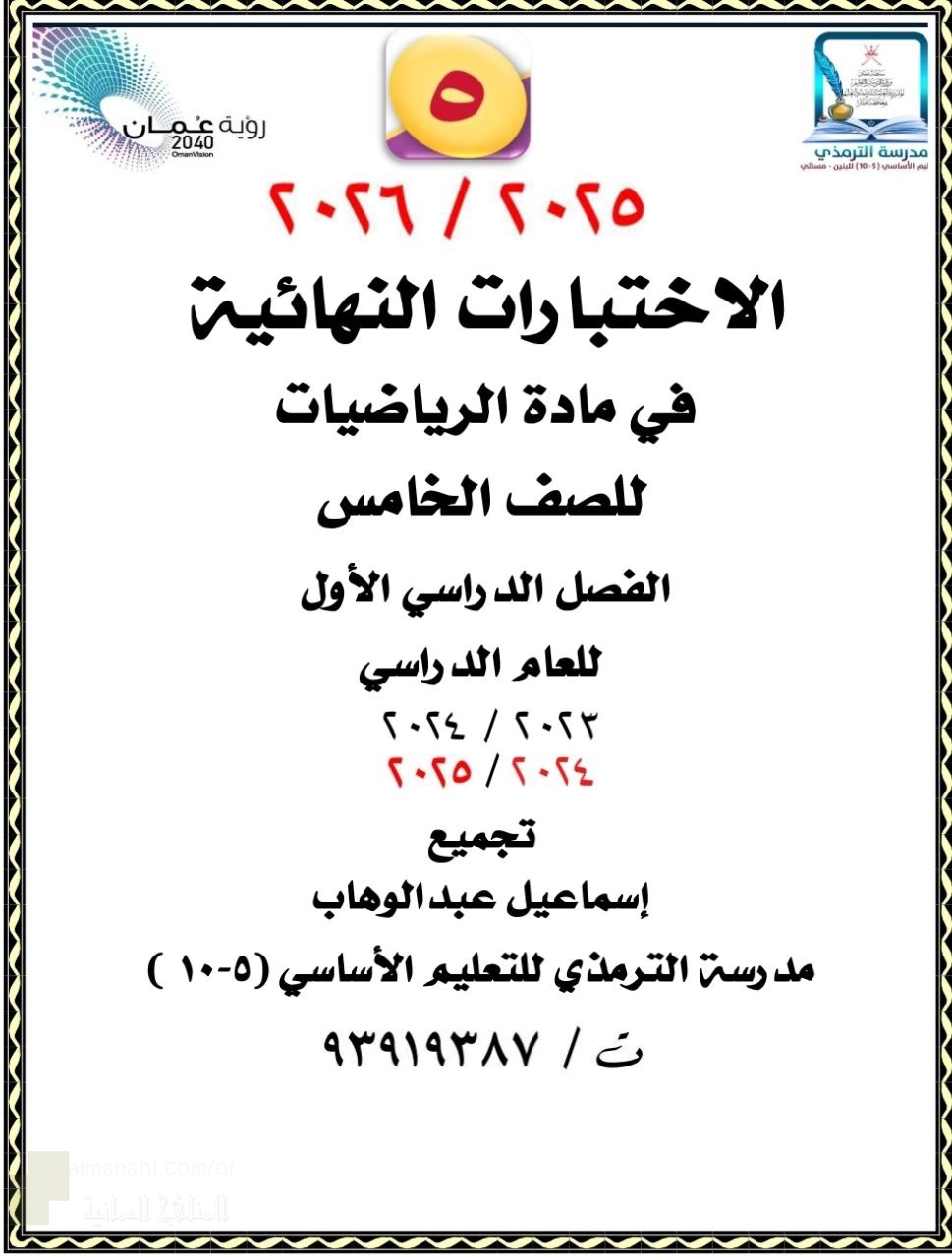 تجميع أسئلة الامتحانات النهائية السابقة, الصف الخامس, رياضيات, الفصل الأول, 2025/2026 - المناهج العمانية