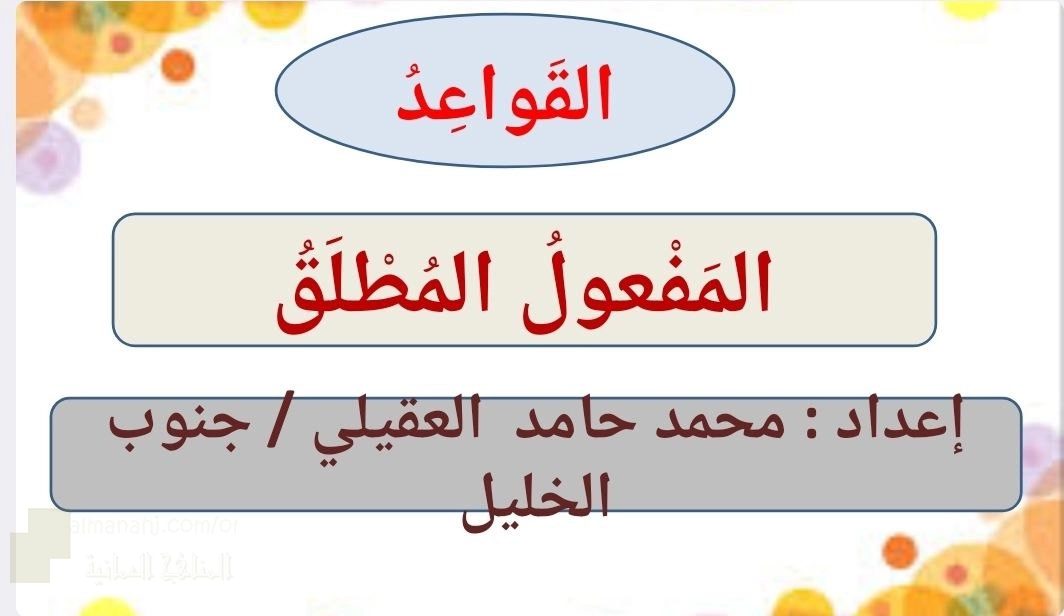 عرض بوربوينت لدرس المفعول المطلق أحد دروس القواعد - إعداد: محمد العقيلي