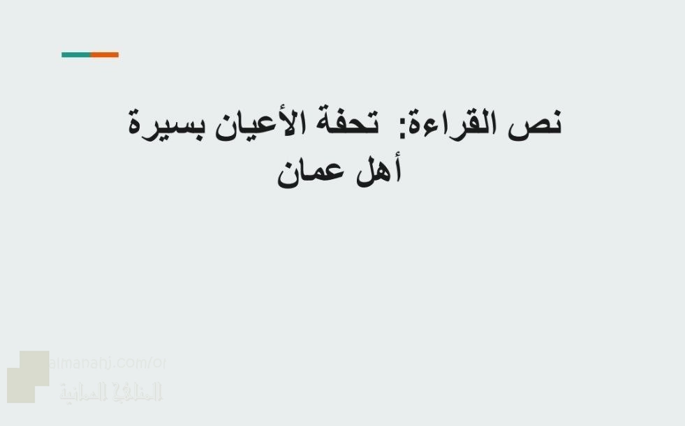 1. الصف التاسع, لغة عربية, عرض بوربوينت لدرس القراءة تحفة الأعيان بسيرة أهل عمان