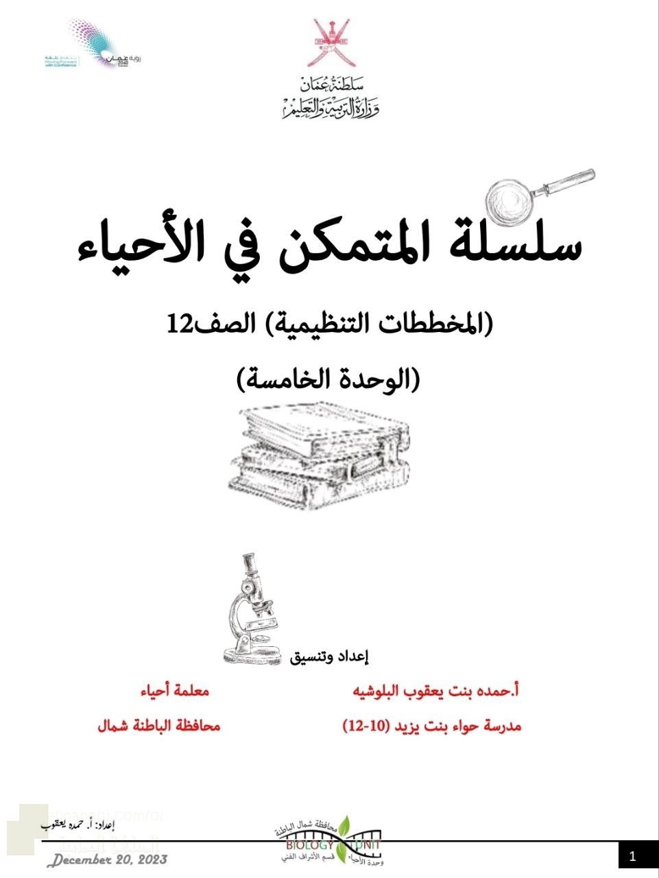3. الصف الثاني عشر, أحياء, ملخص ومخططات تنظيمية للوحدتين الرابعة والخامسة من سلسلة المتمكن