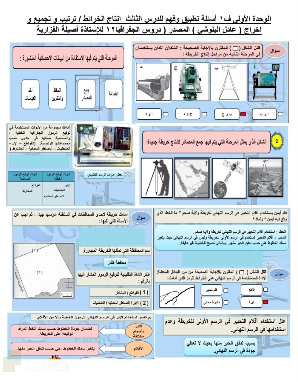أسئلة تطبيق وفهم للدرس الثالث إنتاج الخرائط - إعداد: عادل البلوشي