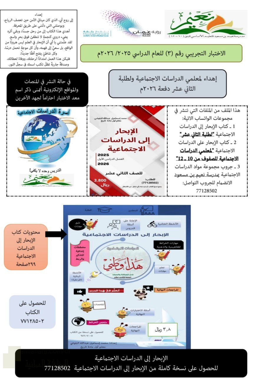 3. الصف الثاني عشر, اجتماعيات, امتحان تجريبي ثالث مع نموذج الإجابة من سلسة الإبحار