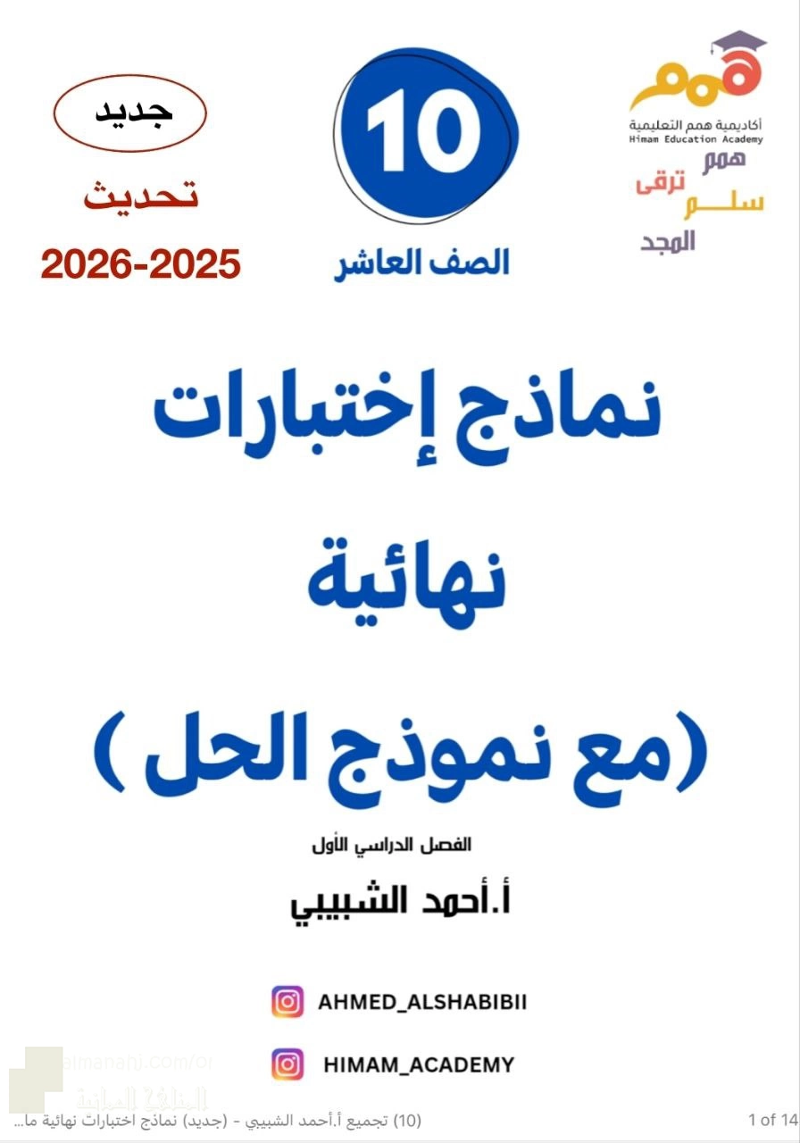 معلومات الملف: أعزائي الطلبة نقدم لكم ملف يتضمن نماذج اختبارات نهائية سابقة مع الإجابات من أكاديمية همم التعليمية