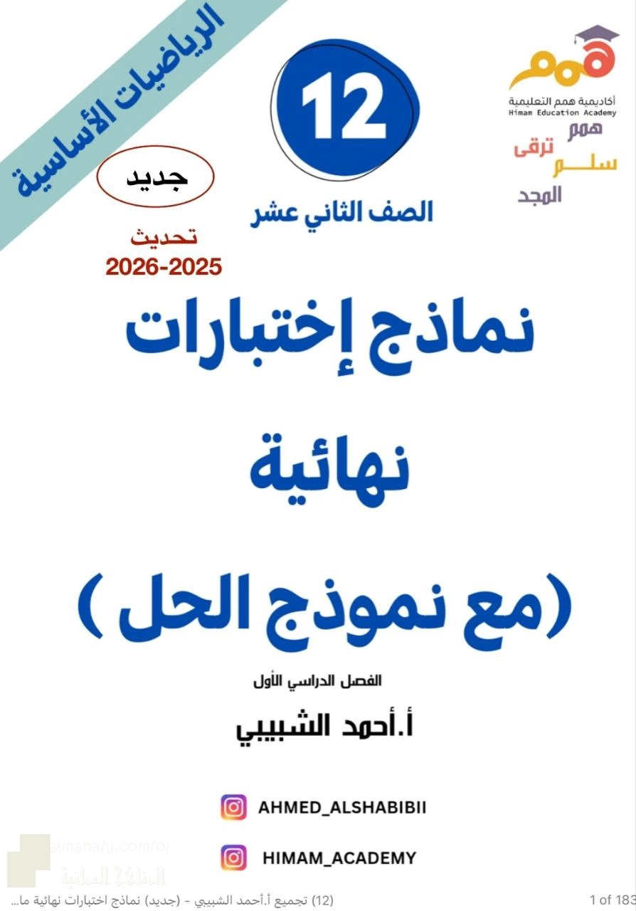 2. الصف الثاني عشر, رياضيات أساسية, اختبارات نهائية سابقة مع نماذج الإجابة