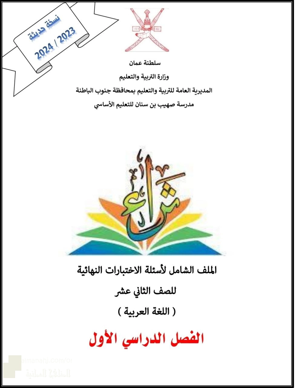2. الصف الثاني عشر, لغة عربية, الملف الشامل لأسئلة الامتحانات النهائية